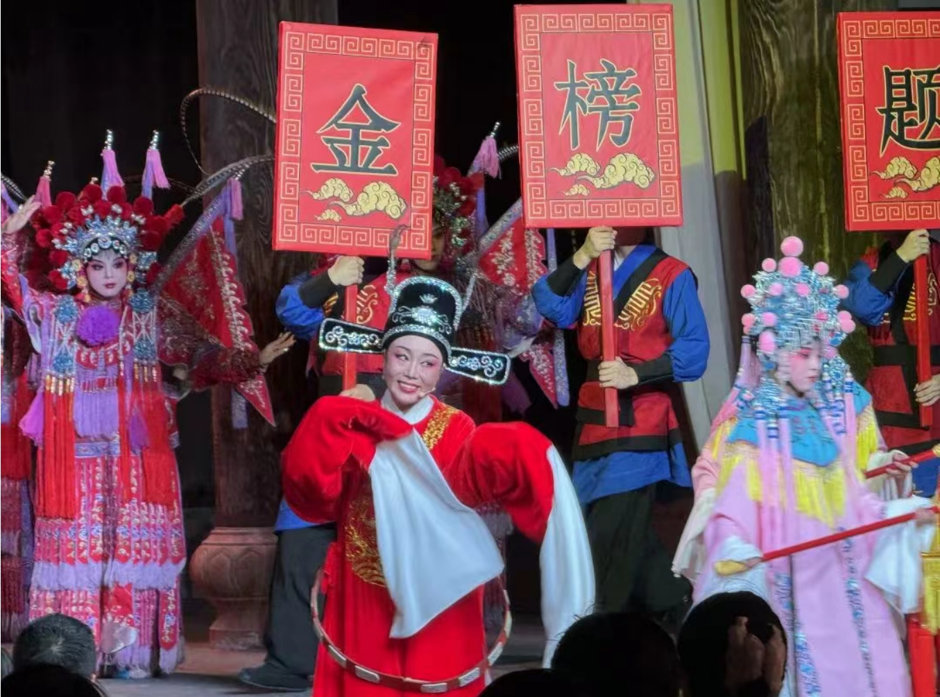 “仔细听这唱腔,和我们平时唱的不一样哦。”戏剧爱好者张灵萍没舍得移开视线,趁着幕间换场的空当,赶紧和身边的姐妹咬耳朵,“没想到在家门口能看到这么地道的豫剧,值了!”