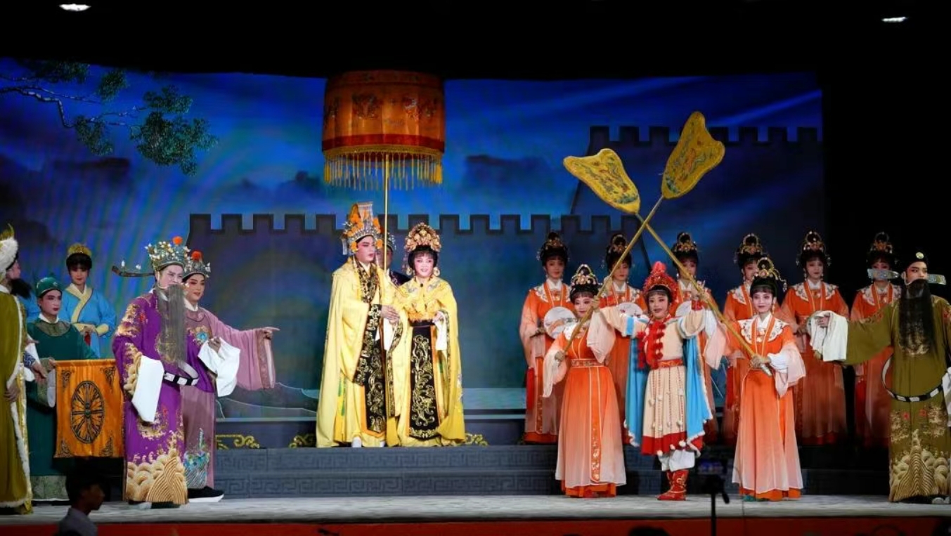 琼剧《和亲风云》正演到文成公主辞行长安的段落,海南欣禾琼剧团的演员们轻启朱唇,婉转的唱腔像山涧清泉般淌过石窟,把文成公主的不舍与家国担当唱得细腻动人。台下,来自山下郎村的村民们跟着节奏轻轻点头。“第一次听琼剧,虽然听不太懂,但调子台风都很美。”村民陈云莲举着手机录下片段,眼中满是新奇与赞叹,“要发给在海南种瓜的亲戚看看,咱黄岩现在能看到全国的好戏!”