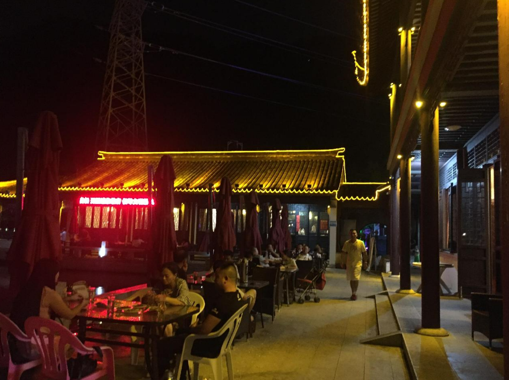 夜幕降临,烟雨楼的灯光逐渐亮起,湖面倒映着柔和的光芒,营造出一种清幽宁静的氛围。打开小木窗,弯月与石拱桥的灯光交织成景,湖色更加迷人。在这样的环境中品味佳肴,心情无比愉悦,而此时,露天的雅座也渐渐热闹起来,人们品茶聊天,享受着这份宁静与惬意。